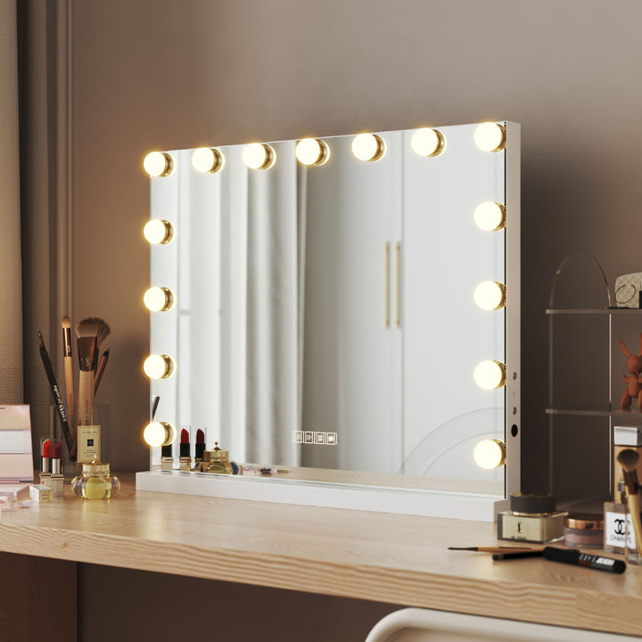 - High-Quality LED Bulbs: 15 dimmable LED bulbs provide soft, flattering light for professional makeup application. USB outlet at the side allows convenient phone charging.