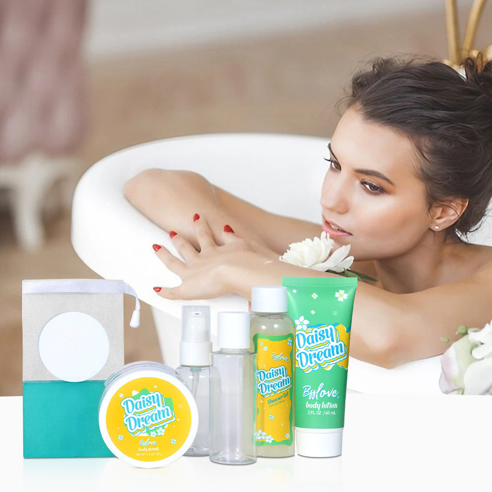 Indulge in a refreshing morning shower with our Luxurious Floral Spa Bath Set. The delightful daisy floral aroma sets the tone for a revitalizing start, enhancing your relaxation bath time and leaving your skin smooth and joyfully hydrated. Perfect for travel, this all-in-one toiletry bag includes body scrub, lotion, shower gel, soap, and travel-friendly bottles. Surprise and pamper your loved ones with this thoughtful skincare bundle, ideal for birthdays, Valentine’s Day, Christmas, or Mother’s Day.