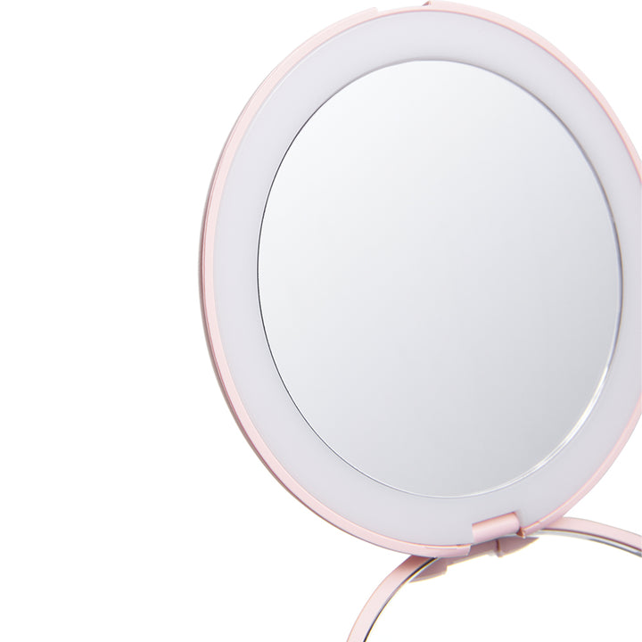Chic Pink Double-Sided Makeup Mirror with LED Light