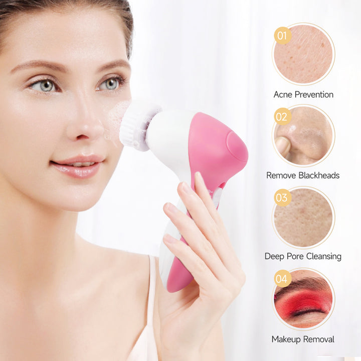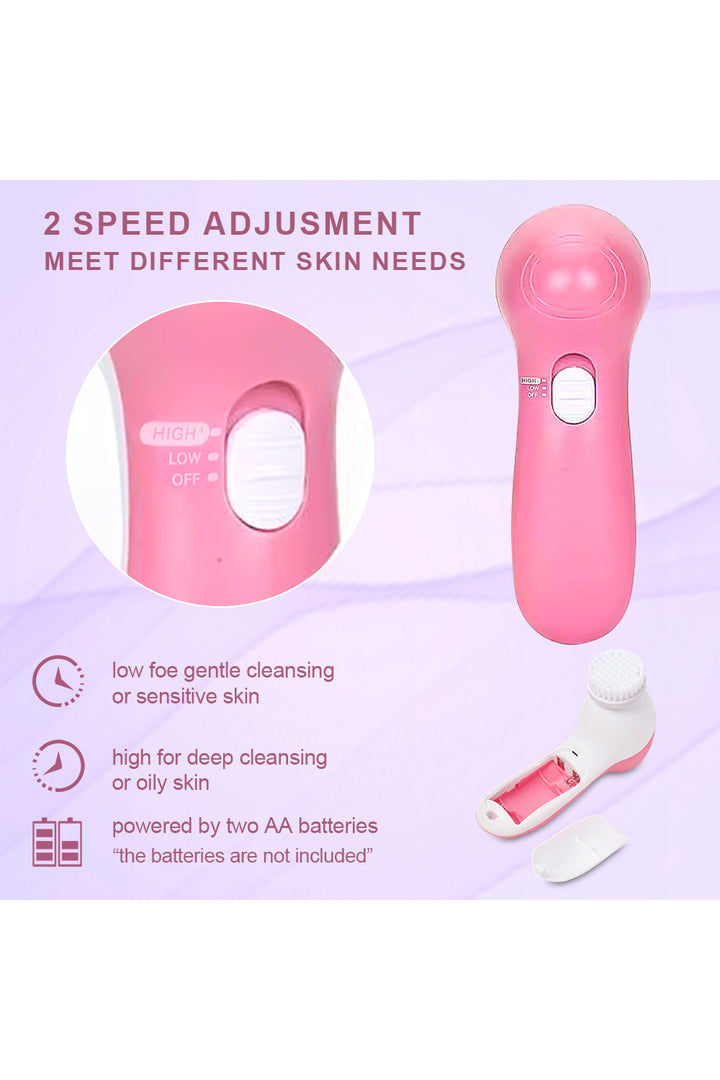 Five-In-One Electric Cleansing Brush Set Powered by Batteries for Cleaning Pores