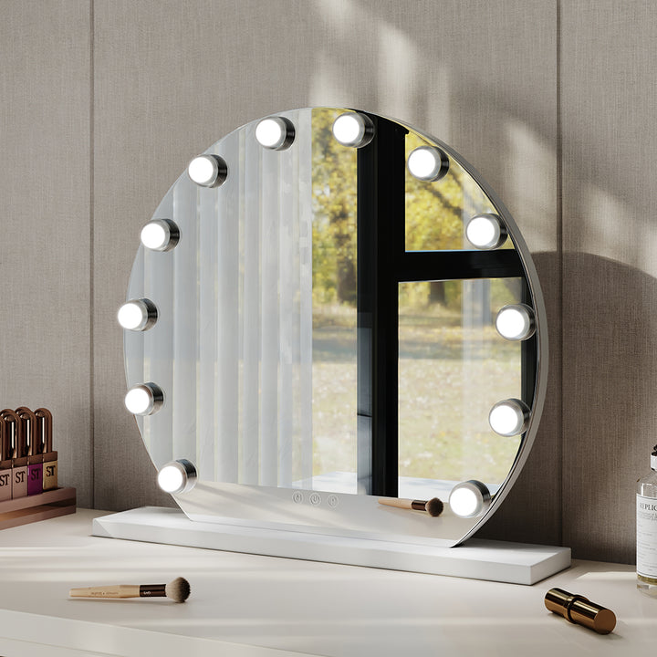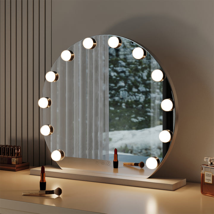 This cosmetic mirror is crafted for individuals who appreciate an elegant lifestyle. This mirror not only elevates the aesthetics of your room but also provides you the convenience of checking your appearance throughout your daily routine. It is particularly handy for achieving flawless makeup before attending special occasions. Featuring energy-efficient and eco-friendly 12 LED bulbs, this mirror enhances lighting while maintaining a soft, eye-friendly glow, ensuring every facial detail is clearly visible.