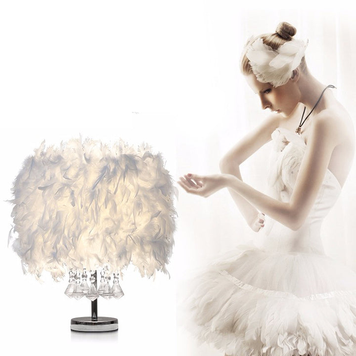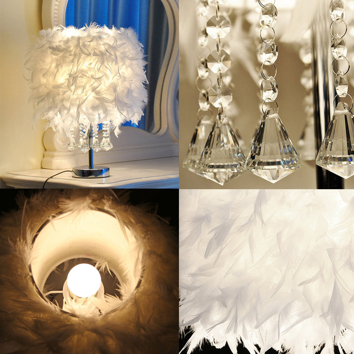 Modern White Feather Bedside Table Lamp
