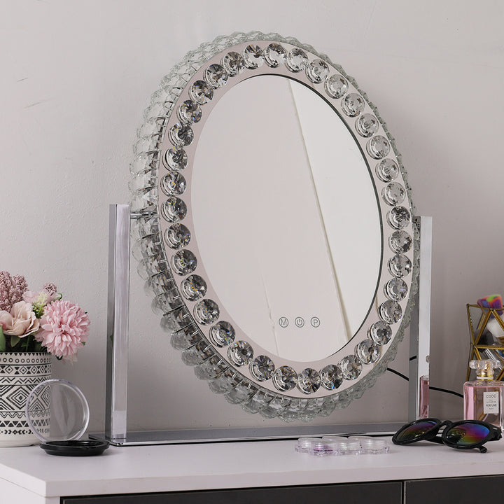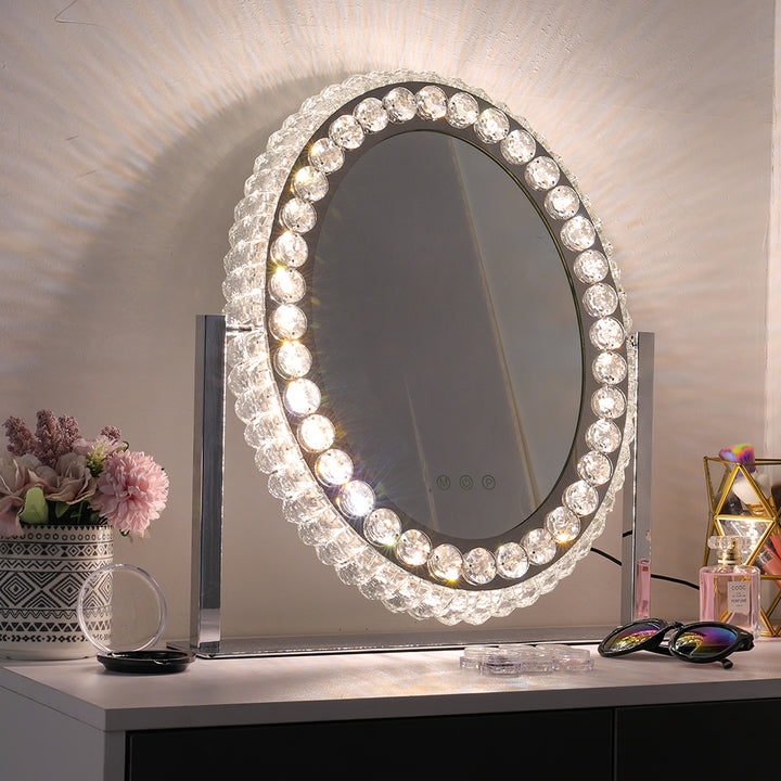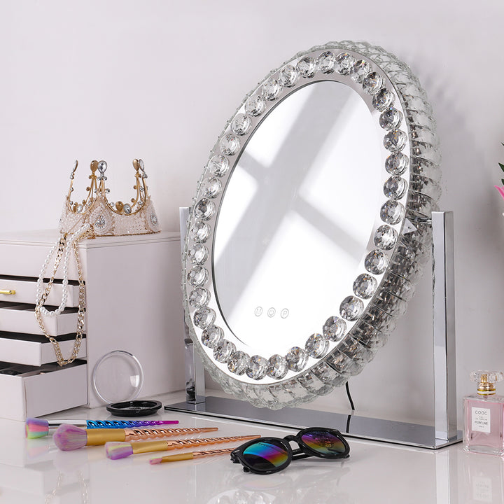 Oval Makeup Mirror Crystal LED Vanity Mirror with Touch Screen