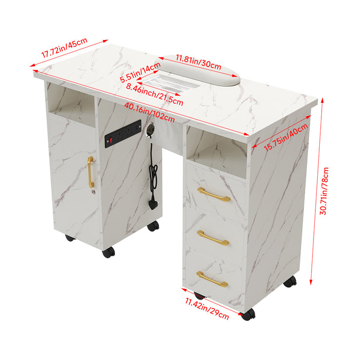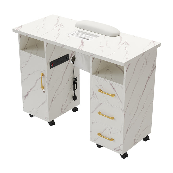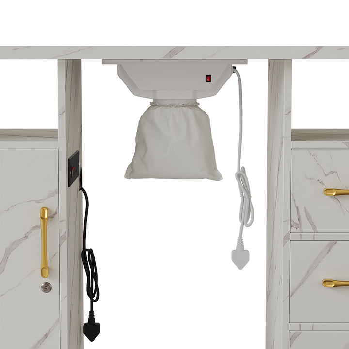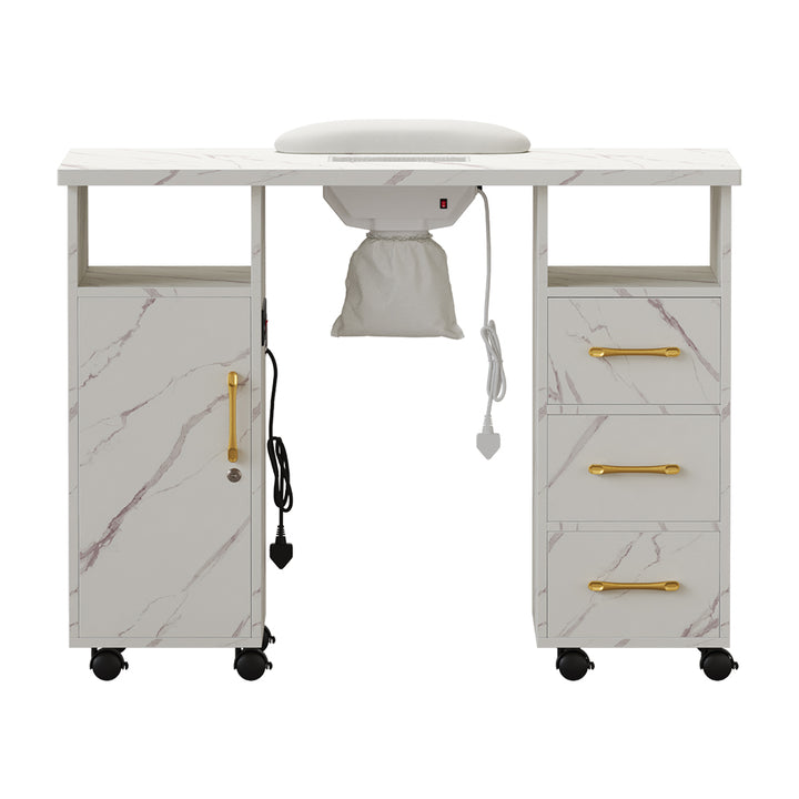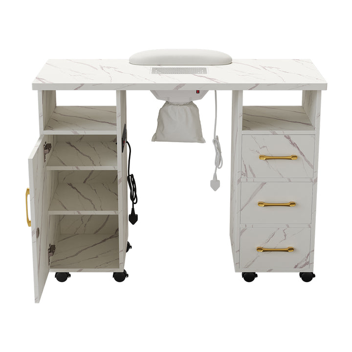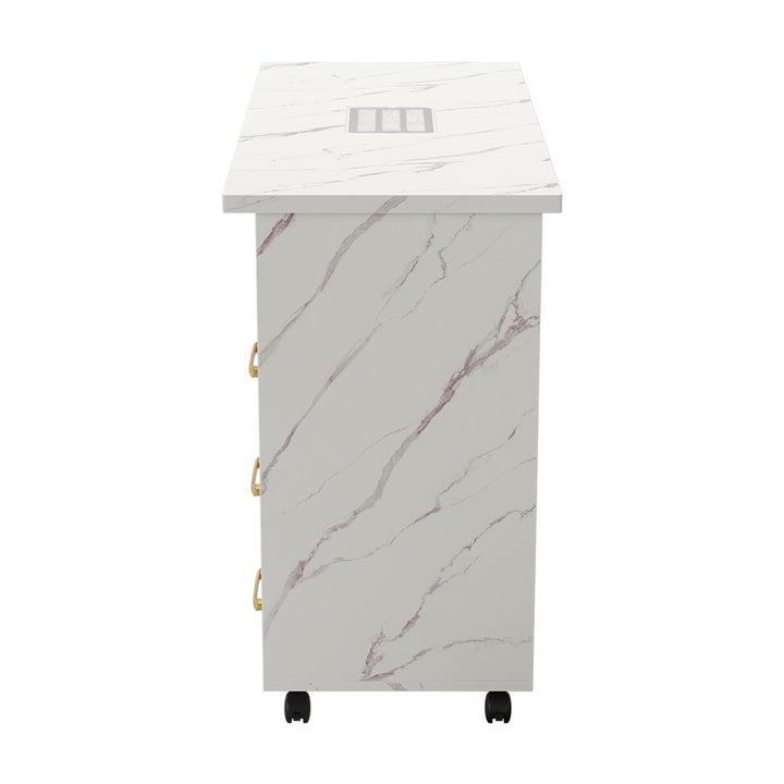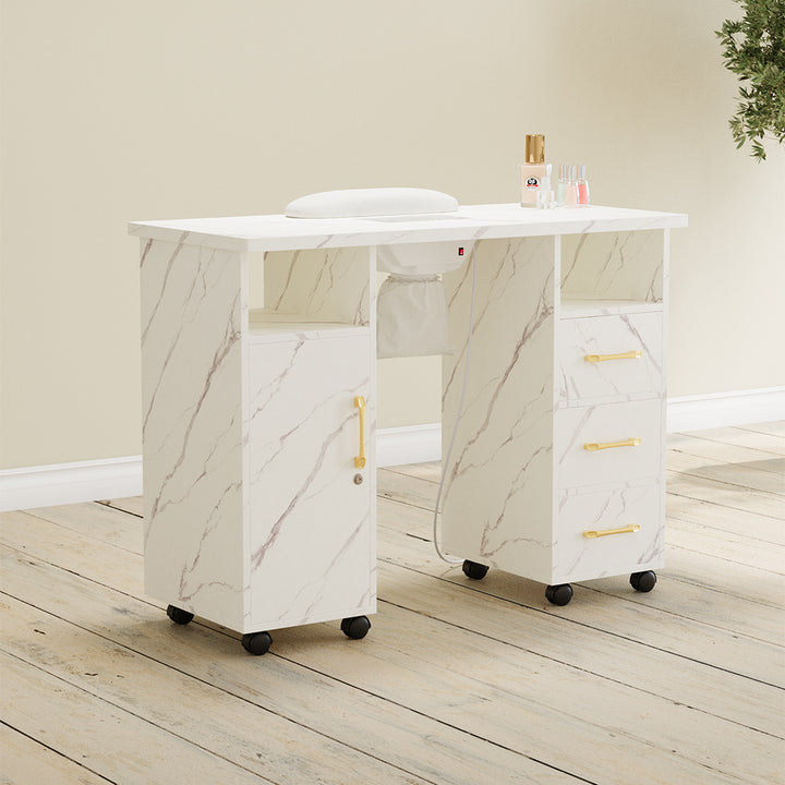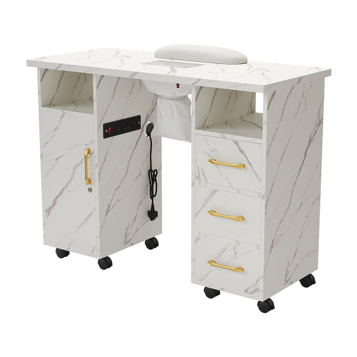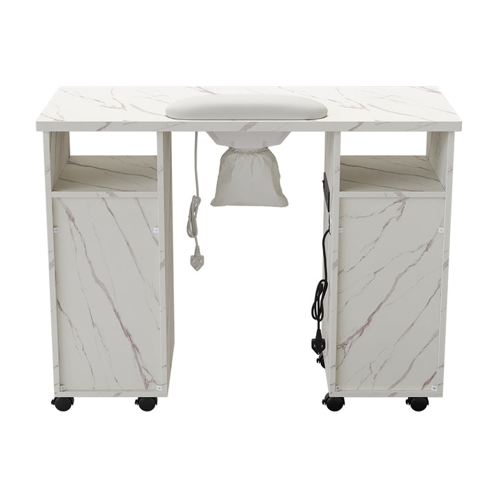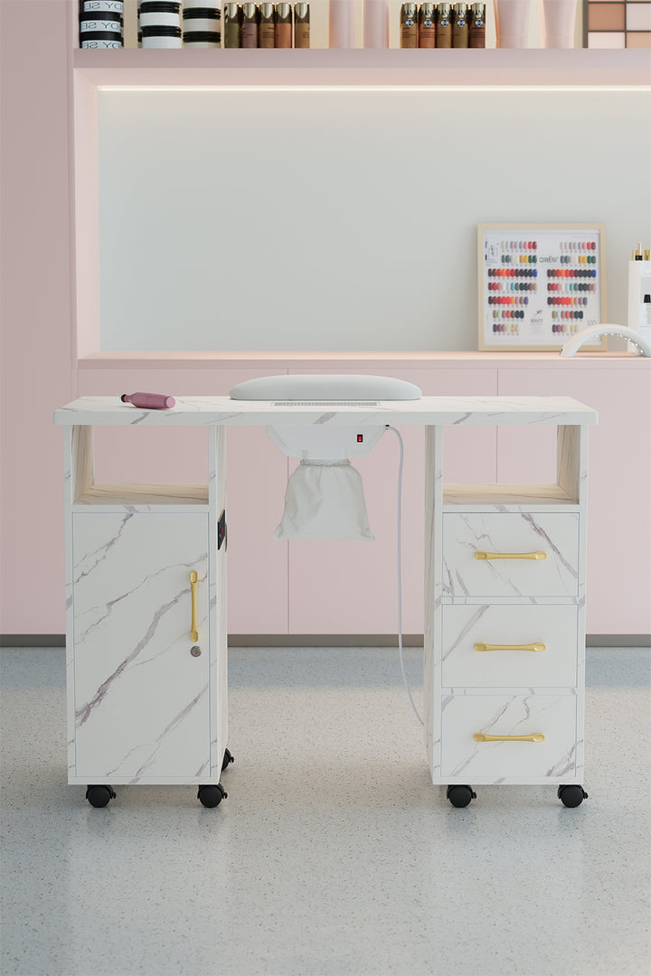 The Portable Nail Table with Dust Collector and Charging Station, Featuring White Marble Texture